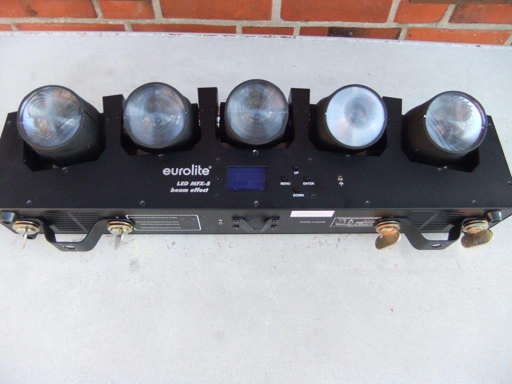 Lichteffekt: Showtec Airstrike 5 R Entladungslampe Quad Beam | Mietpreis pro Tag 20,- Euro bei Abholung.