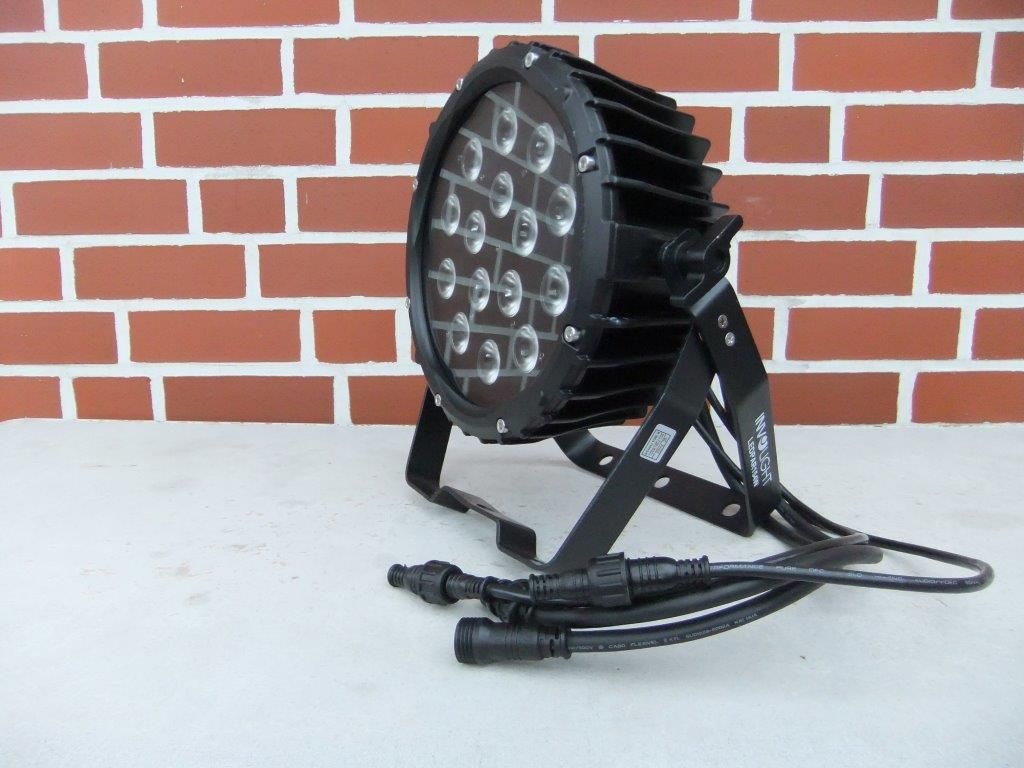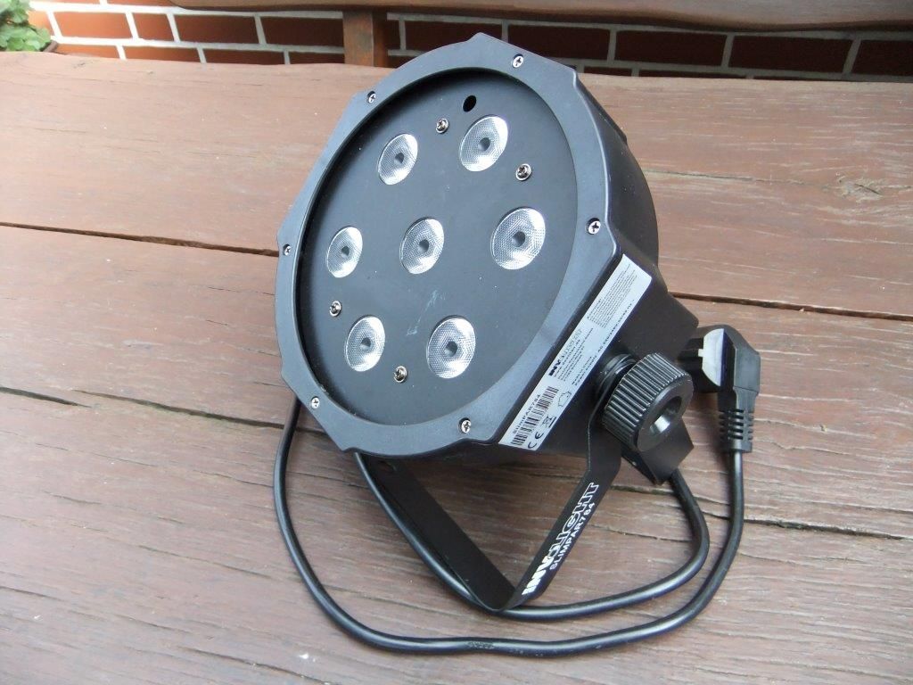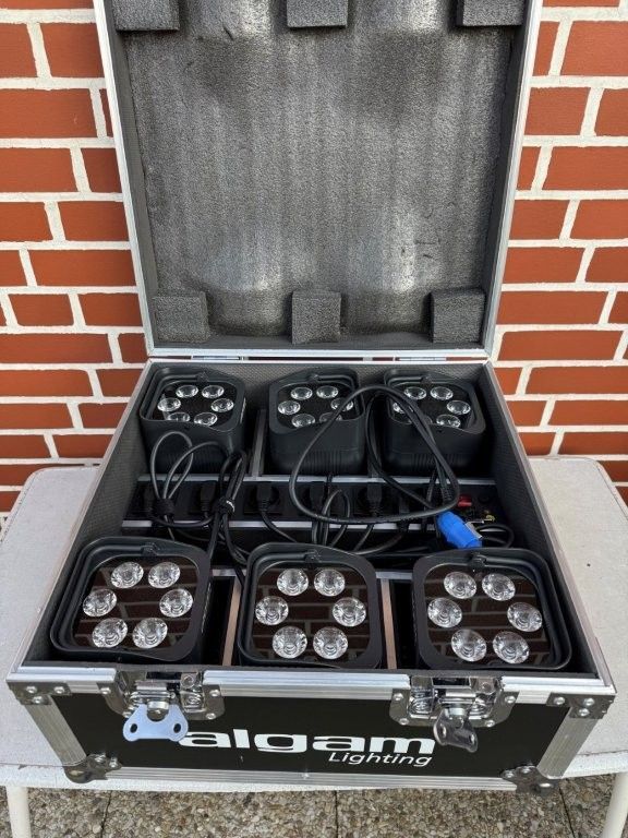 Akku LED Scheinwerfer: Algam Lighting Eventpar 6 x 12m Watt | Mietpreis je Scheinwerfer pro Tag 15,- Euro bei Abholung.